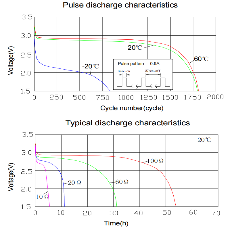3500mA | Pulse cycle discharge at 25±5℃, 3son 27soff, discharge to 8.0V, the output capacity can reach half of the nominal capacity